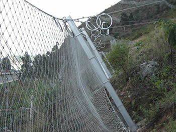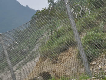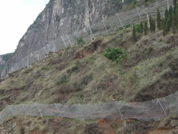 This product is widely used in the railway, highway, the mine, the water and electricity project, the tourist site, the river course and in the municipal engineering. SNS is one kind of new technical product completely changed the traditional ideas of slope protection. This product has incomparable advantages compared with other similar products. When works as products withstanding huge impulse, it can avoid the damage may caused by the partial centralism stress, with the lengthened response time; increased mesh point surface; at the same time, it receives the partial stress with the whole. The SNS product is suitable for any complex terrain, while maintaining the primitive land form. SNS product has mesh opening allowing good vision, convenient for planting trees and grasses and good for the environmental protection. It is simple for installation to save time. The product has standard components that do not need site further processing. Simple machine, less labor and a small quantity of earth and stone foundation are needed for the building block system installation quickly and easily. It does not need to excavate massively, does not need the massive material, does not disturb the neighboring buildings normal operation and other construction function, hence to avoid the heavy economic loss caused by "the disturbance".