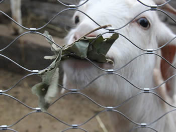 Stainless steel zoo mesh is an extremely strong containment netting suitable for smaller mammals, primates and large birds. Individual mesh knots are double fastened and the netting does not have to be installed under tension. Zoo mesh is available in sizes from 25 x 25mm (1" x 1") to 125 x 125mm (5" x 5"). In wire from 0.7mm to 6.0mm in stainless steel.